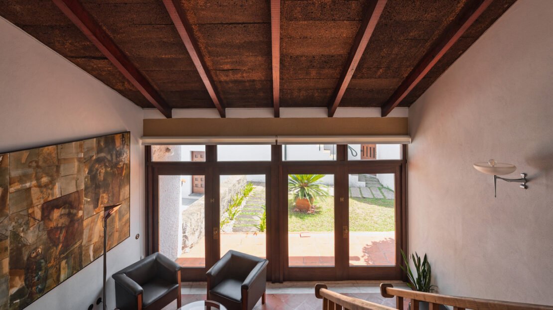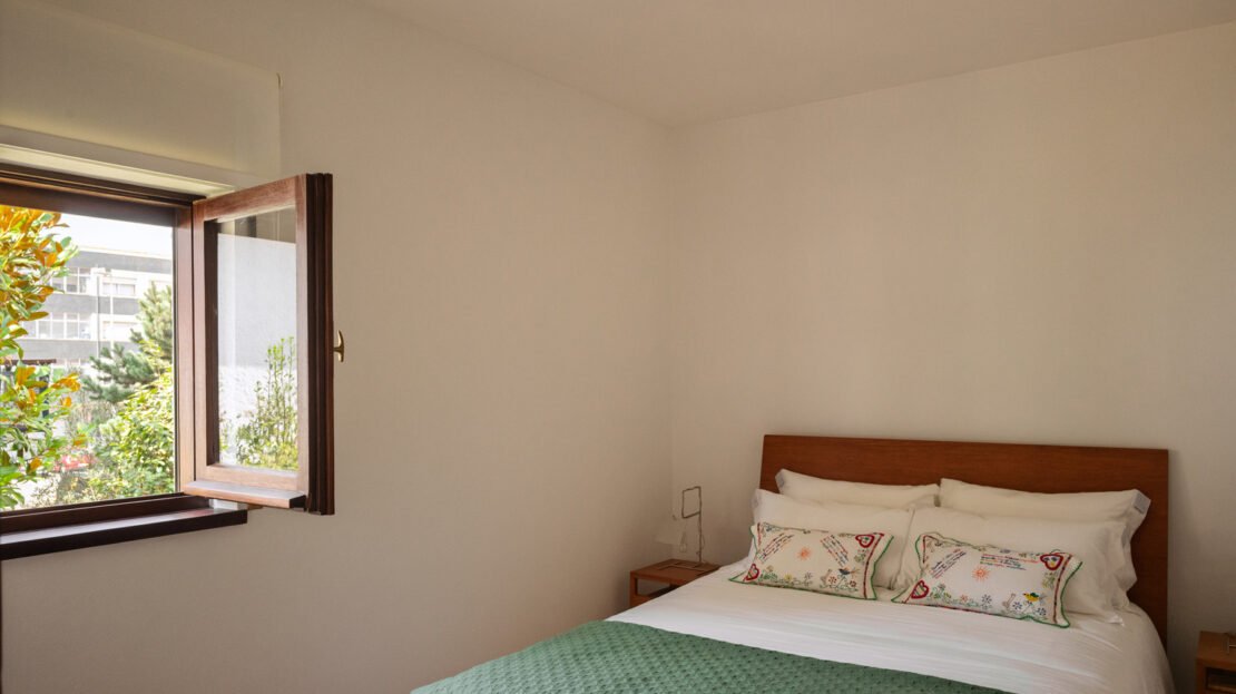 A casa conta com quatro quartos, dois deles suites, sala com lareira, cozinha ampla e áreas de arrumação generosas. O quintal é um dos pontos fortes da propriedade, com espaço para jardim, horta e zona de lazer.